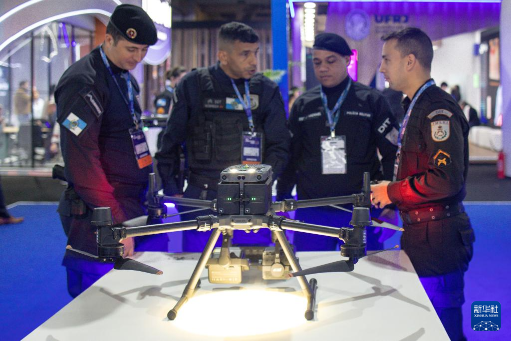8月13日,参观者在巴西里约热内卢举行的里约创新周上了解警用无人机信息。