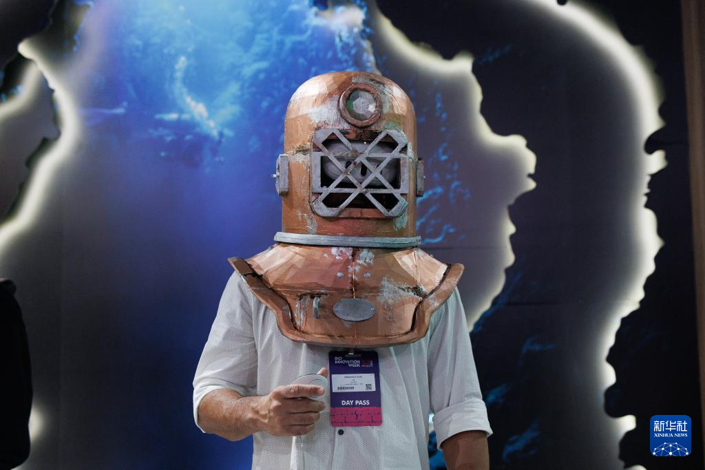 8月13日,参观者在巴西里约热内卢举行的里约创新周上拍摄展会标识。