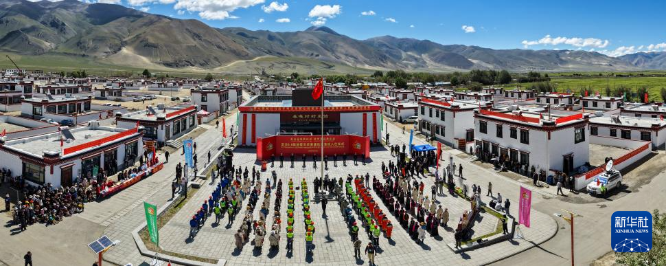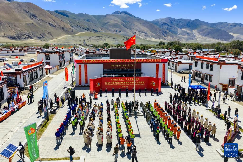 8月15日在西藏定日县森嘎村拍摄的“定日6.8级地震灾后恢复重建民房首批入住仪式”(无人机照片)。