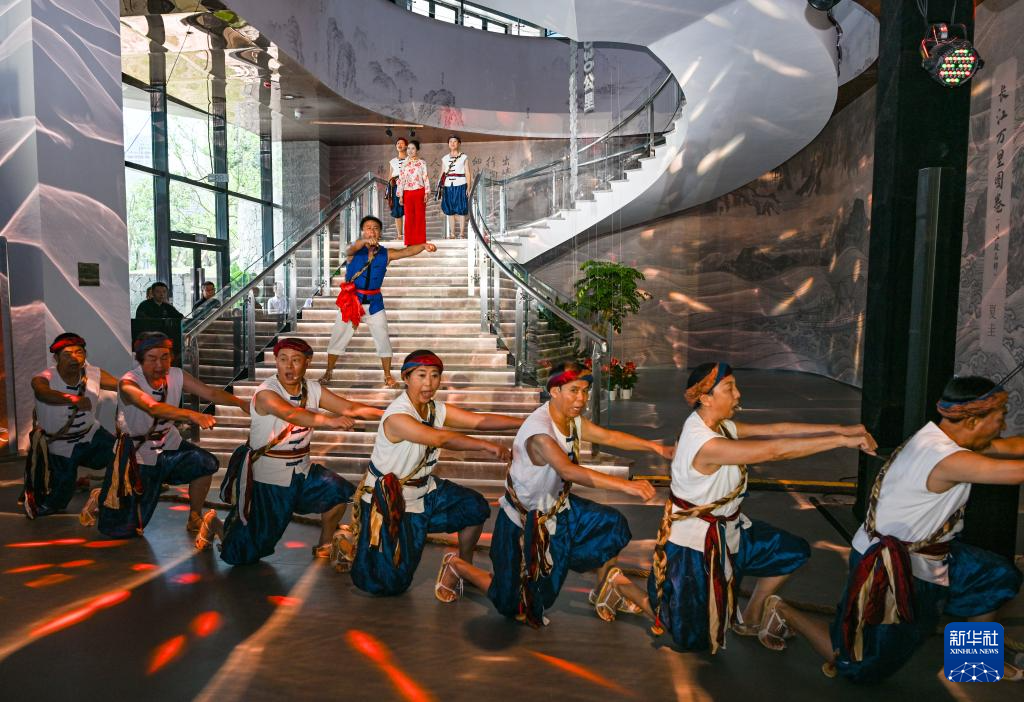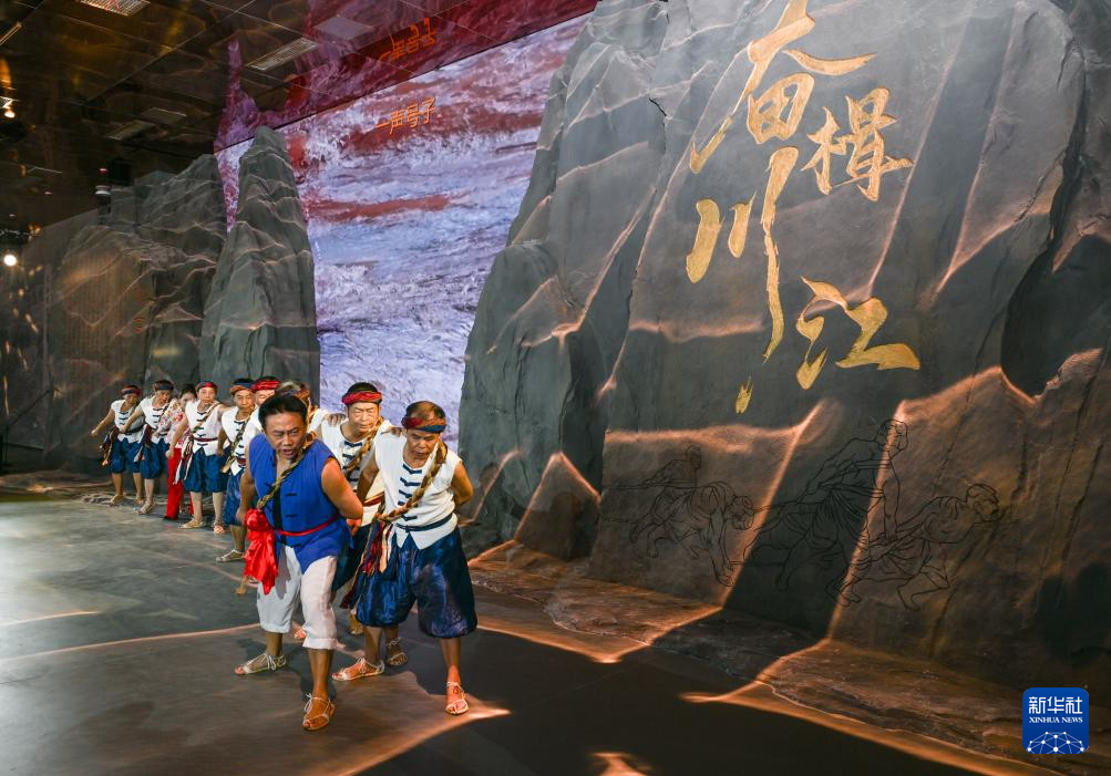 8月15日,演员在川江航运文化园开园仪式上表演歌舞《川江号子》。