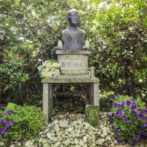 8月7日,在德国海德堡约翰·拉贝交流中心内,托马斯·拉贝在约翰·拉贝雕像前摆放鲜花。