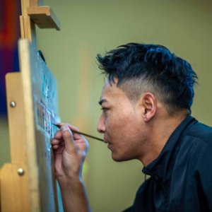 8月6日,一名画师在绘制唐卡。藏族唐卡(齐吾岗派)入选国家级非物质文化遗产代表性项目名录。