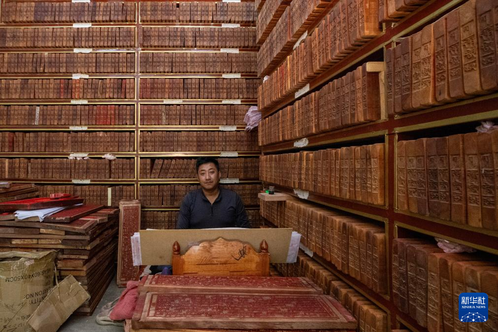 8月6日,一名雕刻师在工作中。西藏雪巴康雕版印刷制作技艺入选西藏自治区级非物质文化遗产代表性项目名录。