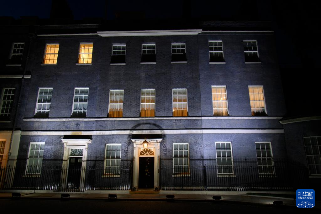 8月15日,位于英国伦敦的唐宁街10号首相府被点亮。