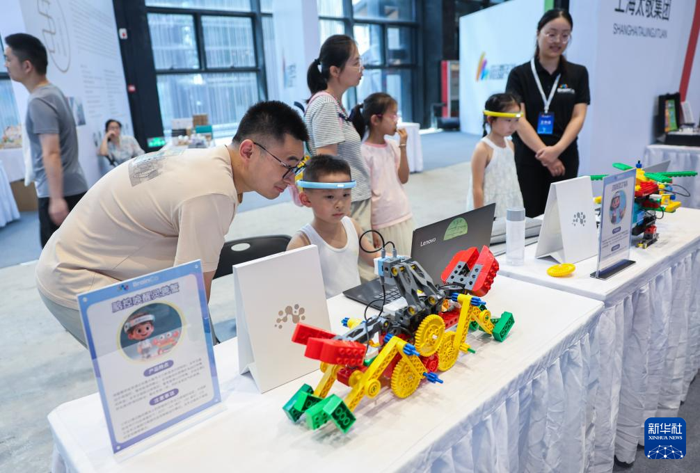 8月17日,小朋友在青少年科技嘉年华上体验“脑控万物”技术