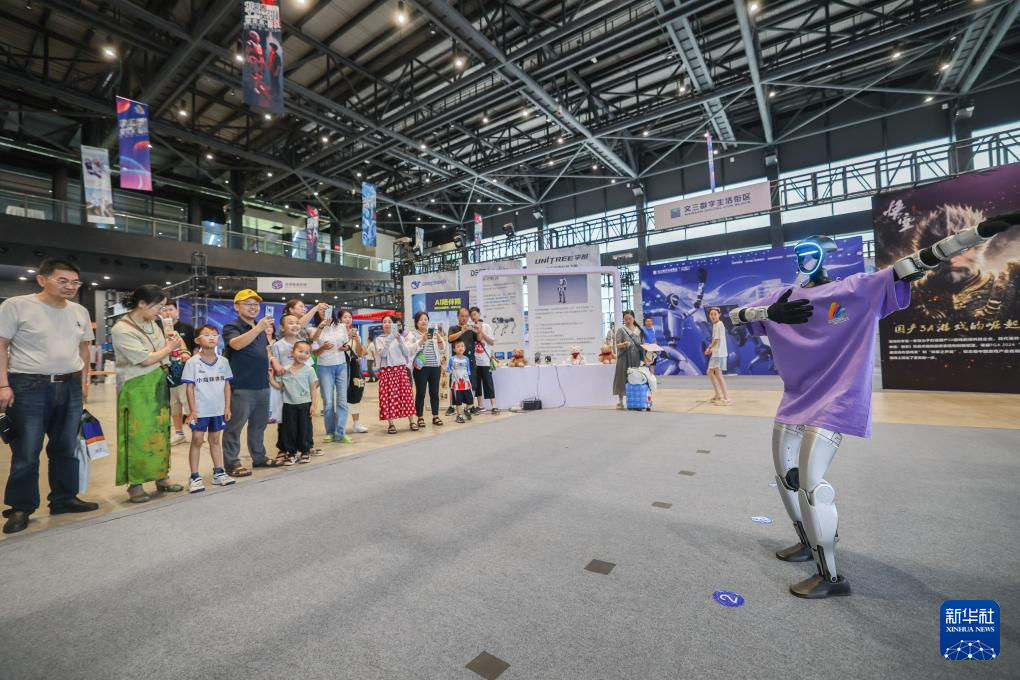 8月17日,在青少年科技嘉年华上,宇树科技机器人在为观众进行舞蹈表演。