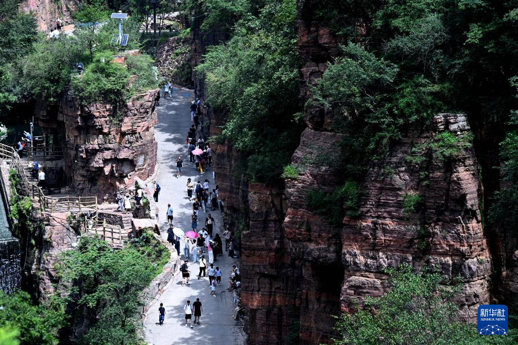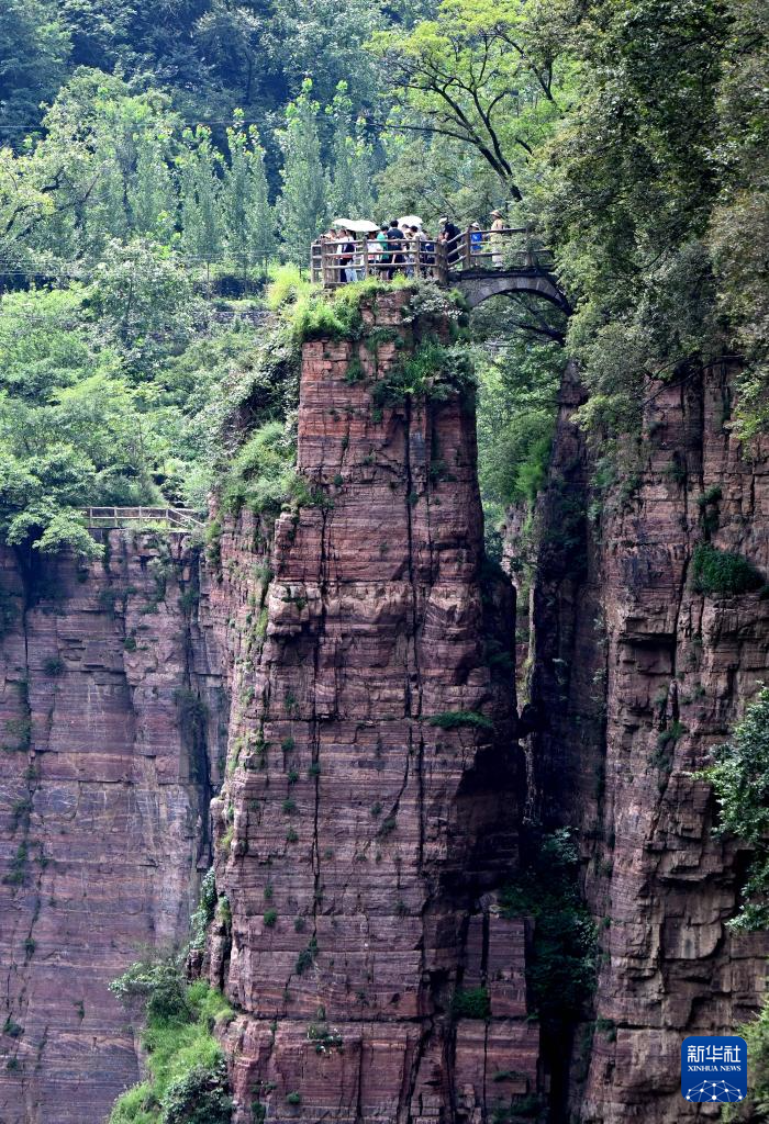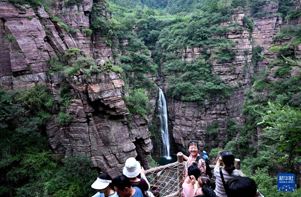 进入暑期以来,河南万仙山景区迎来旅游高峰。位于太行山深处的河南省辉县市万仙山景区红岩绝壁大峡谷景色壮美,以雄、壮、险、奇为特色,吸引游客前来游览。