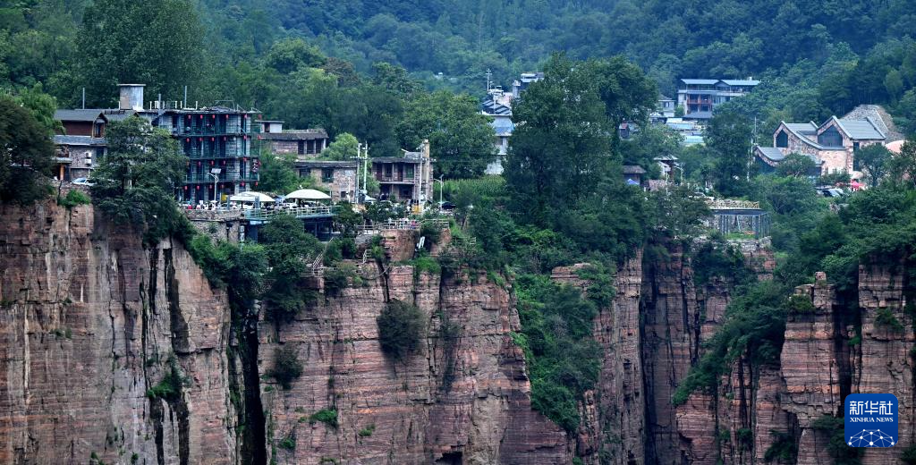 8月16日,游客在河南万仙山景区郭亮村游玩。