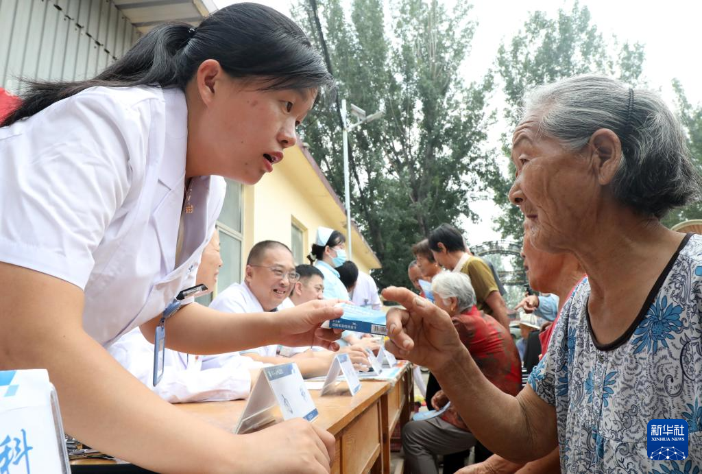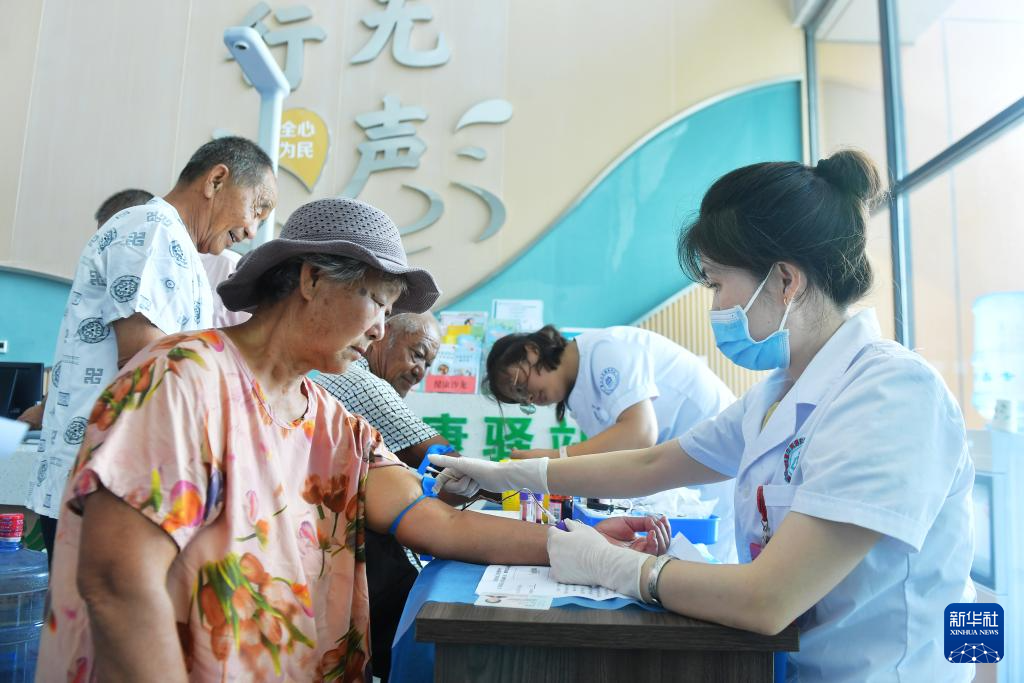 8月18日,在山东省青岛市城阳区夏庄街道社区卫生服务中心,医生为社区居民义诊。