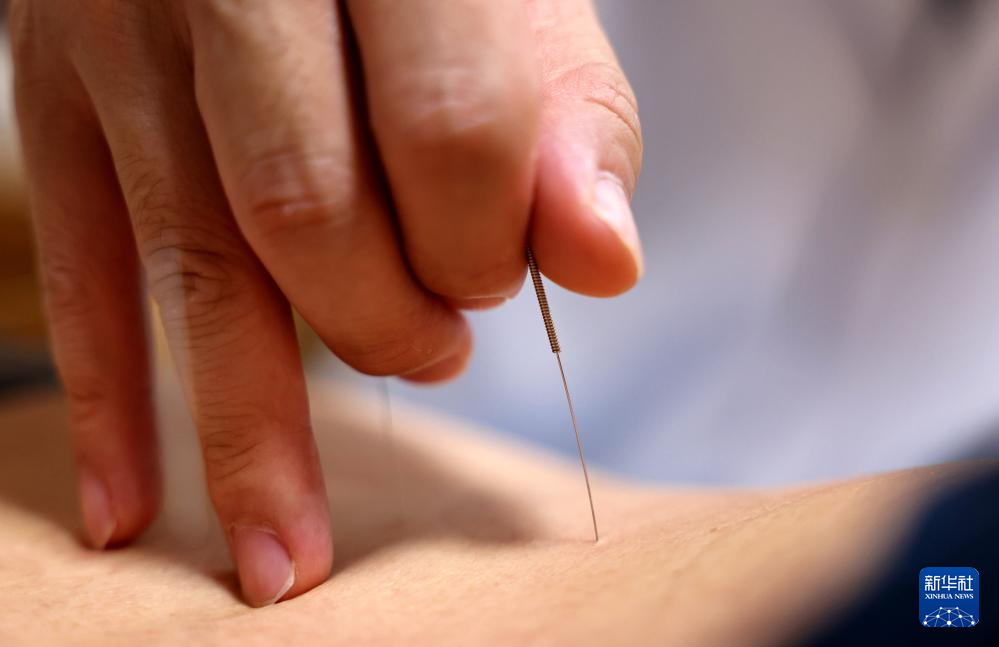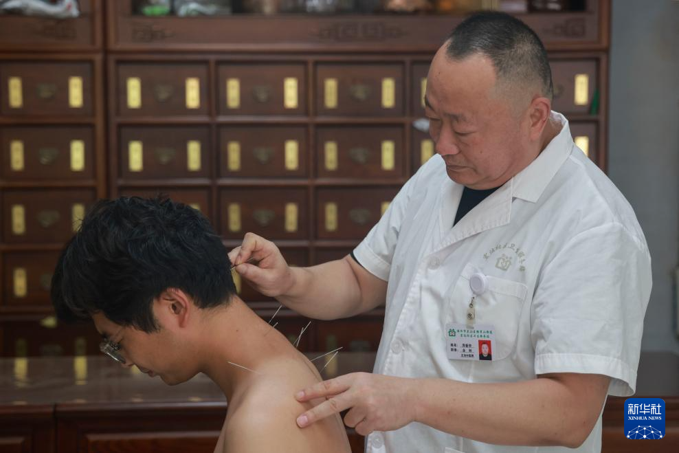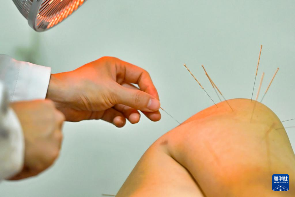 8月18日,在天津市滨海新区中医医院,医生为患者做中医针灸治疗。