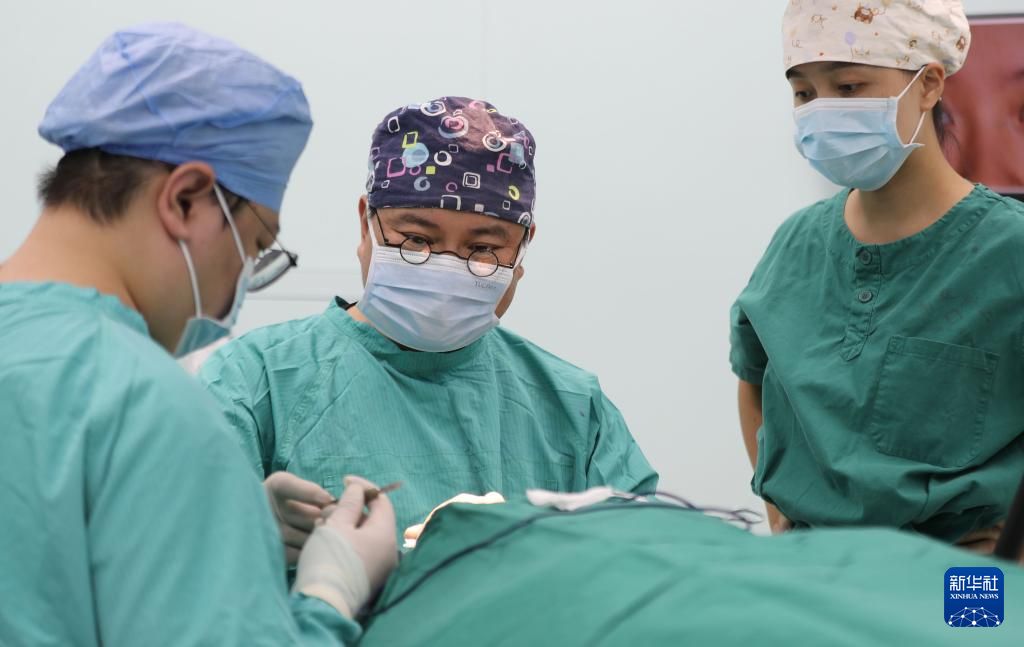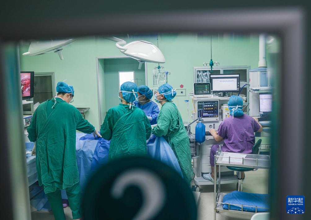 8月18日中午,湖南衡阳南华大学附二医院医生为来自黑龙江漠河的患者做手术。