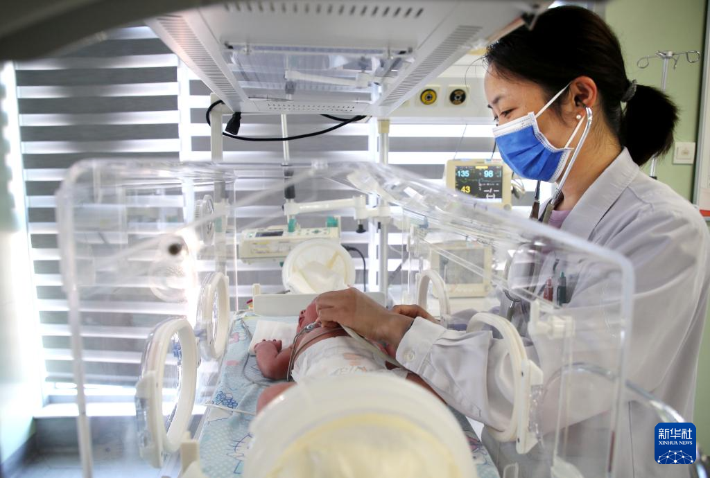 8月18日,在江苏省连云港市立东方医院新生儿科,医师给新生儿听诊。