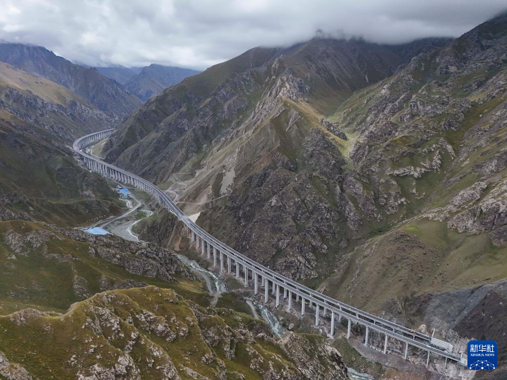 新疆乌尉高速公路穿越天山山脉(8月19日摄,无人机全景照片)。