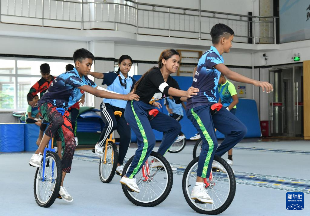 连日来,来自孟加拉国的20多名杂技学员在河北吴桥杂技艺术学校排练厅内刻苦练习。这批留学生将于9月初结束在“杂技之乡”的学习,回国从事杂技表演或杂技教育工作。