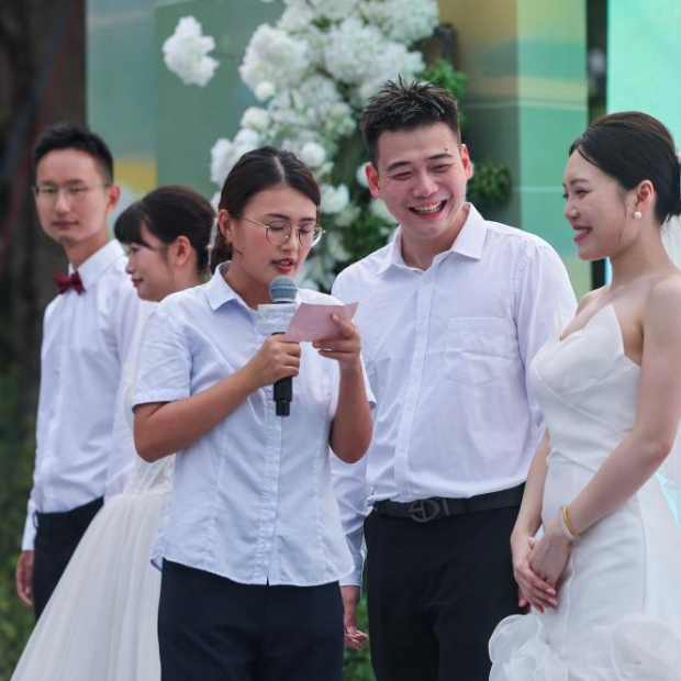 8月20日,新人在诸暨市东白湖镇斯宅村参加集体婚礼。