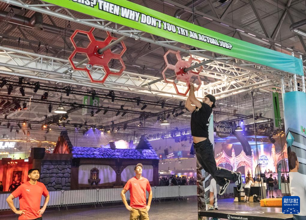 8月20日,在德国科隆,一名男子在2025年科隆国际游戏展上体验闯关游戏。