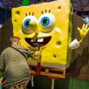 8月20日,在德国科隆,人们在2025年科隆国际游戏展上与模型合影。