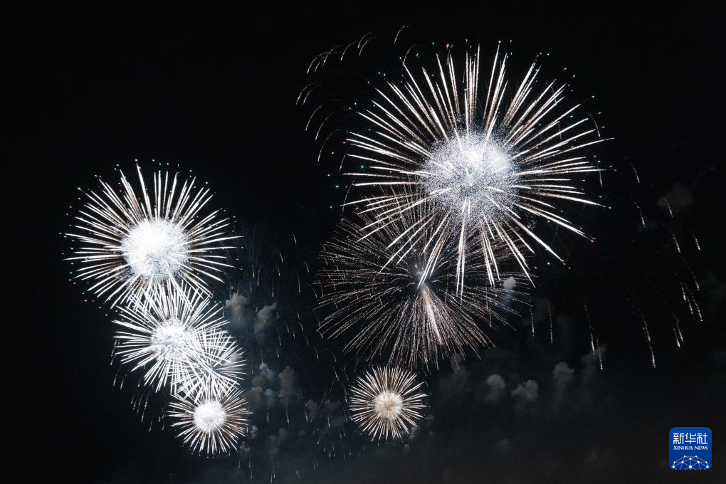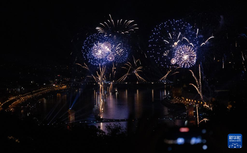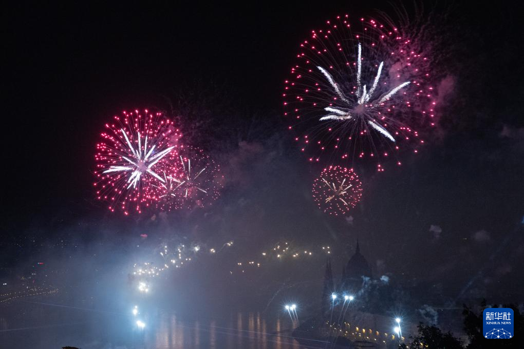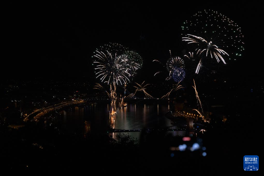 布达佩斯20日晚举行烟花秀,庆祝匈牙利国庆日。