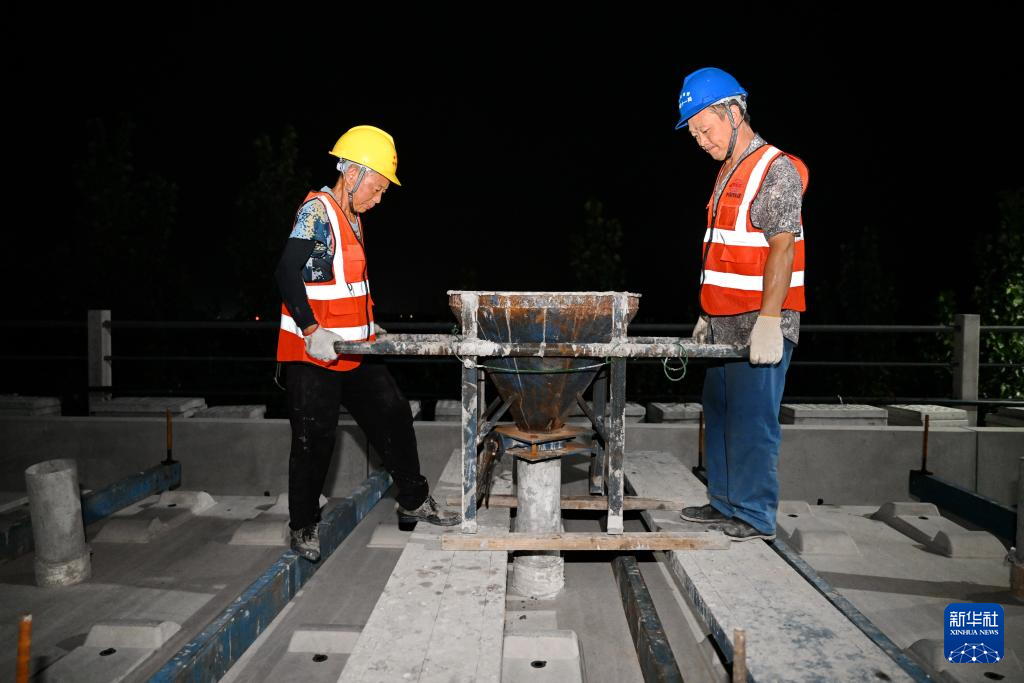 8月20日,中铁十一局工人在雄商高铁站前六标段无砟轨道施工现场浇筑混凝土。