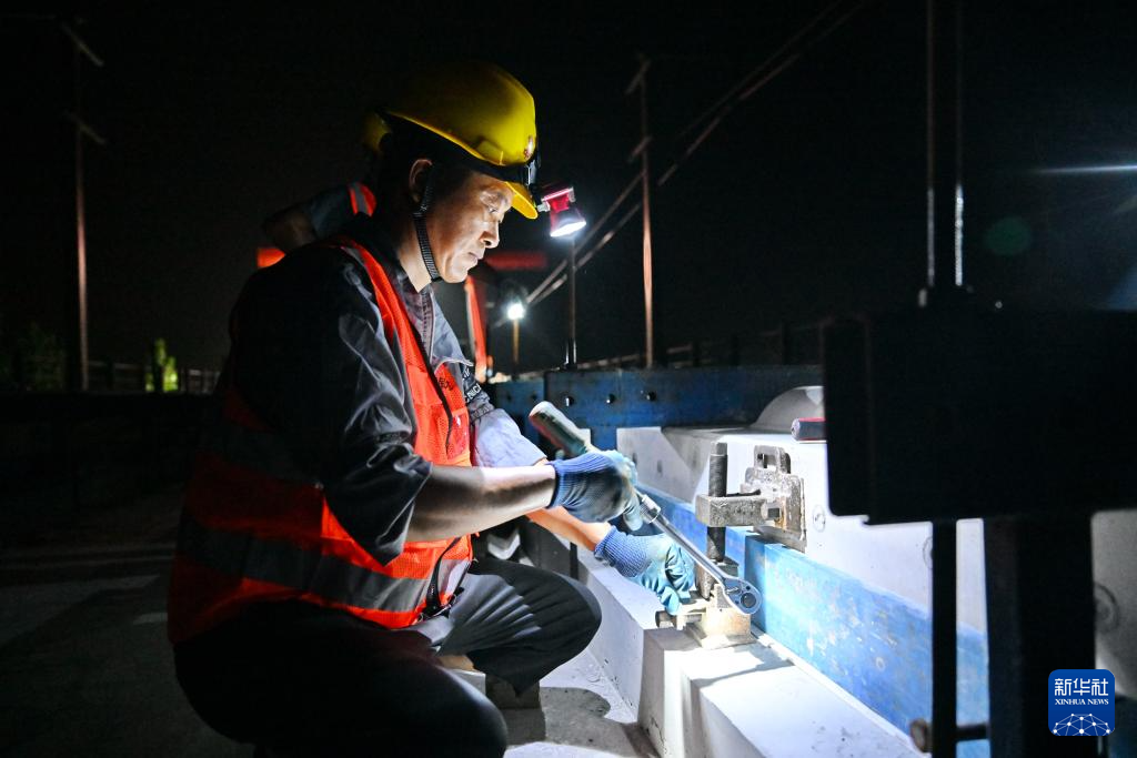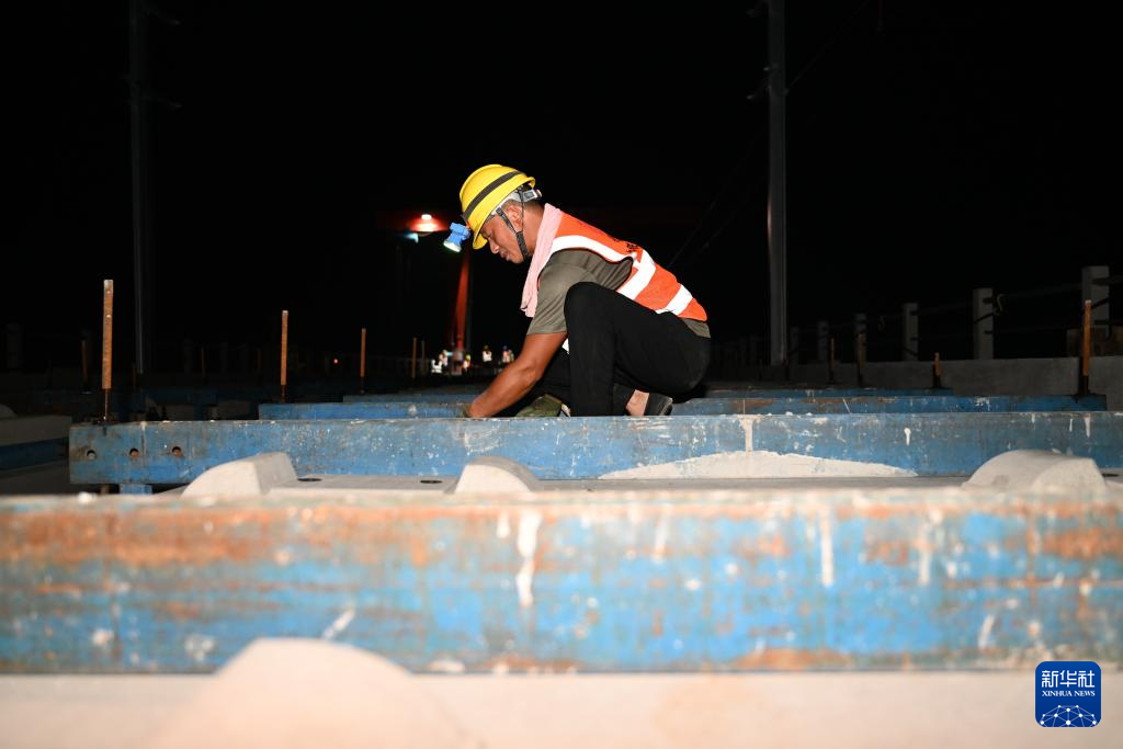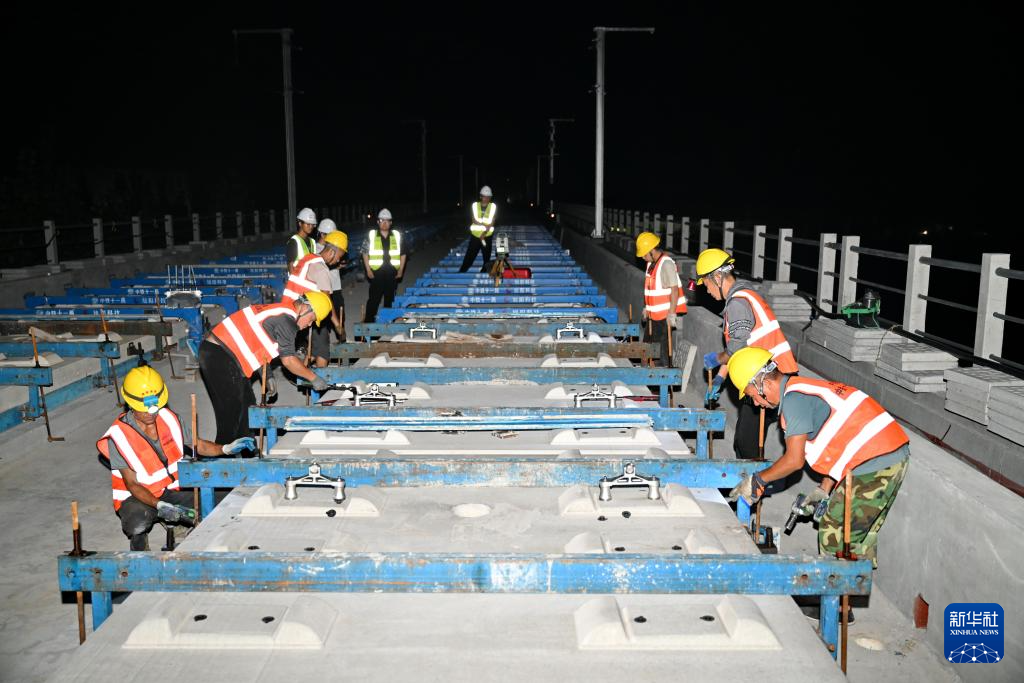 8月20日,中铁十一局工人在雄商高铁站前六标段无砟轨道施工现场作业。