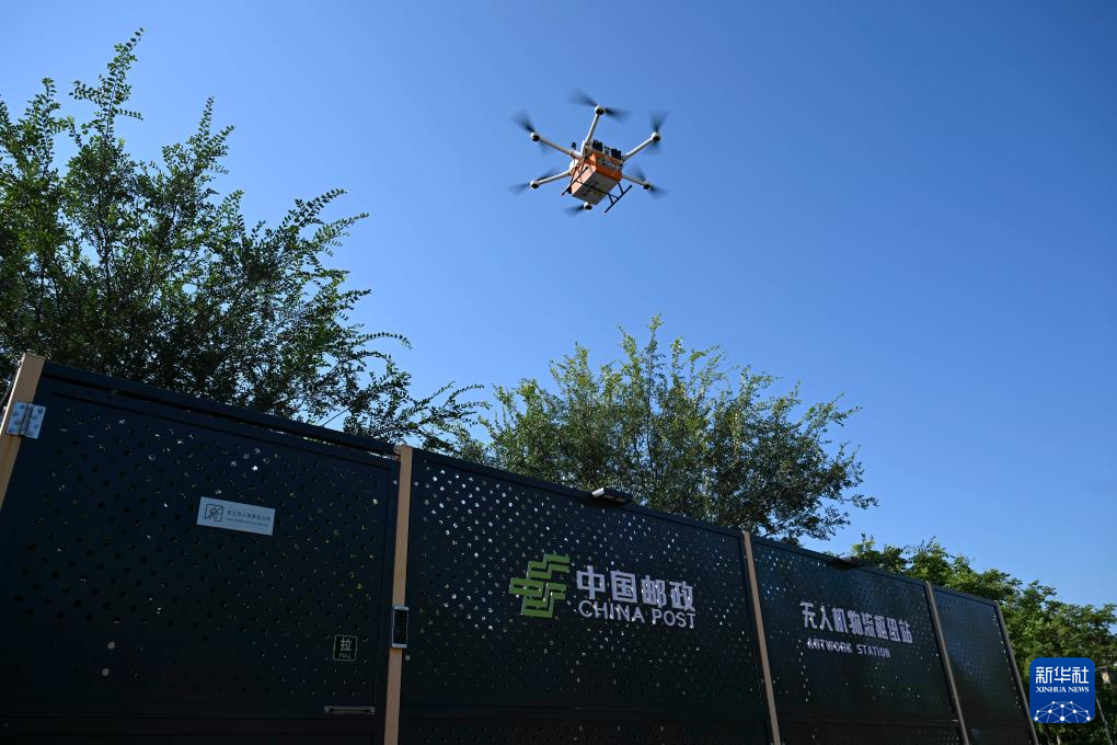 8月19日,在安徽省合肥市巢湖市中庙街道的中国邮政无人机物流枢纽站,无人机起飞配送快递包裹。