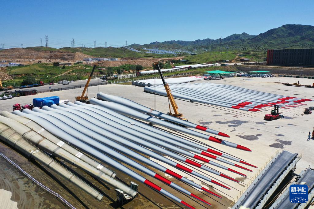 这是7月29日拍摄的包头市明阳新能源智能制造产业园内的风机叶片(无人机照片)。