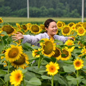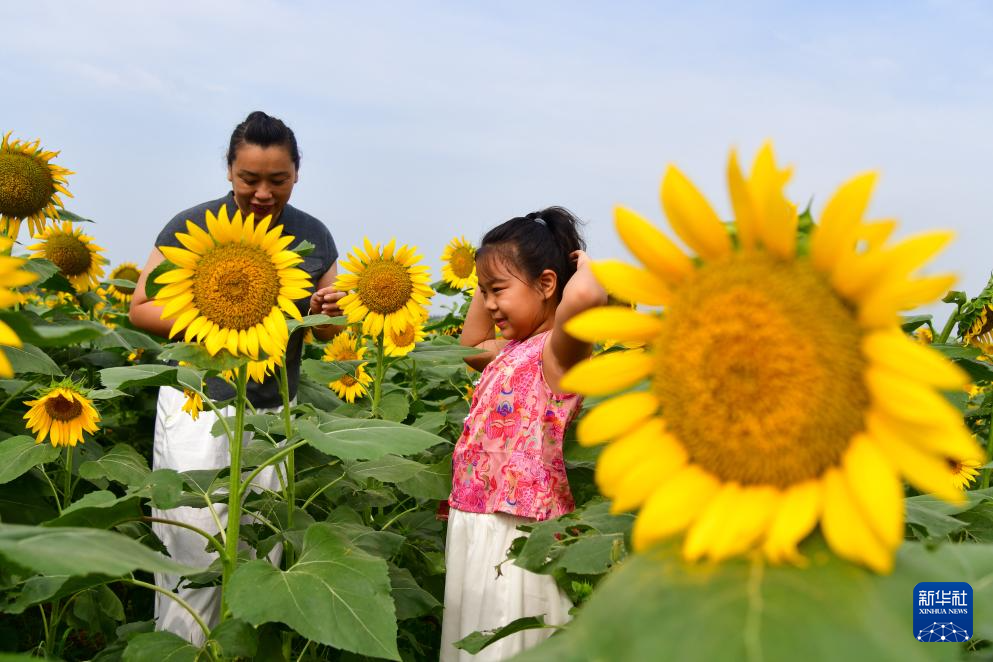 日前,位于山东省济南市长清区孝里街道孝堂山脚下的向日葵进入开花期,吸引游人前来赏花拍照。