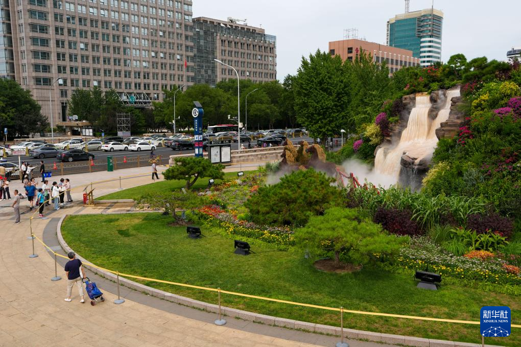 8月26日,人们在北京东单参观“中流砥柱”花坛。