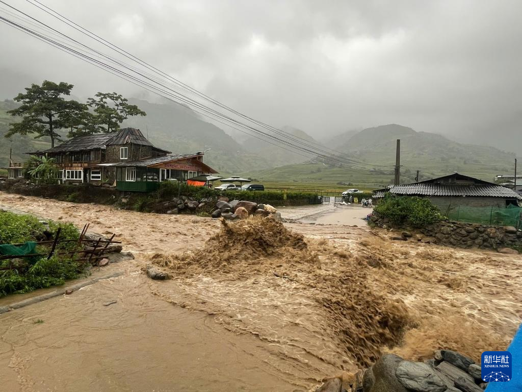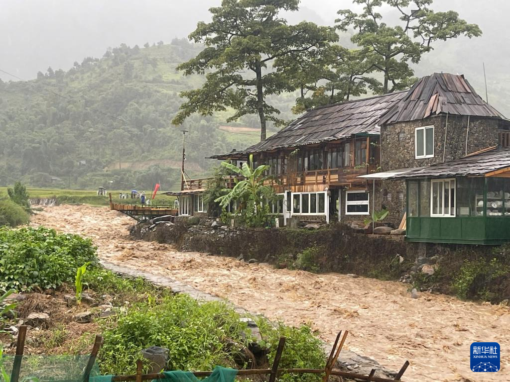8月26日,在越南北部老街省,一处房屋被洪水围困。