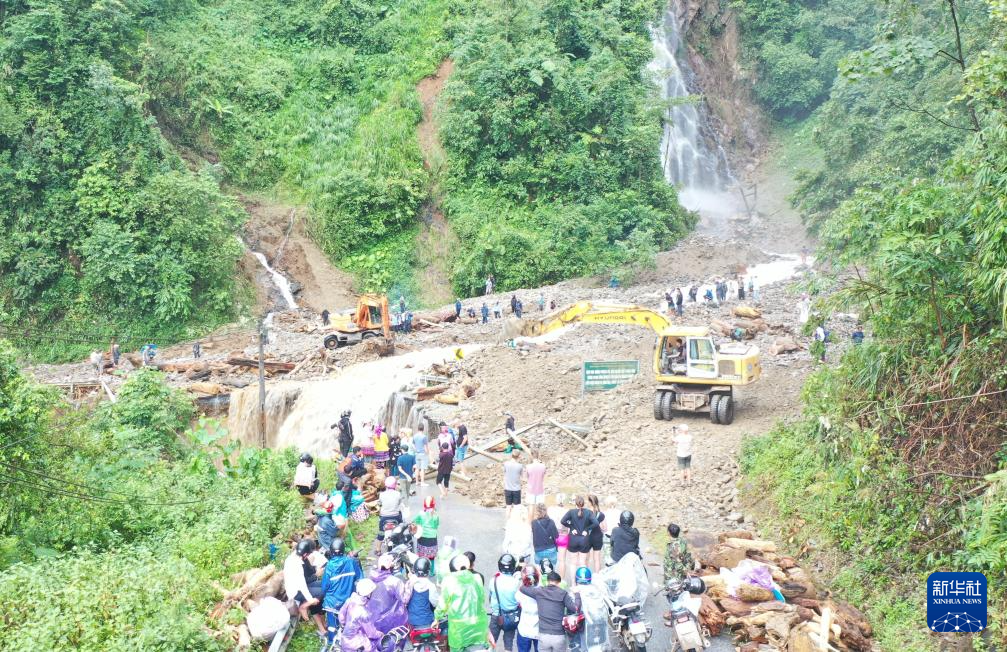 8月27日,越南北部老街省的一处路段发生山体滑坡。