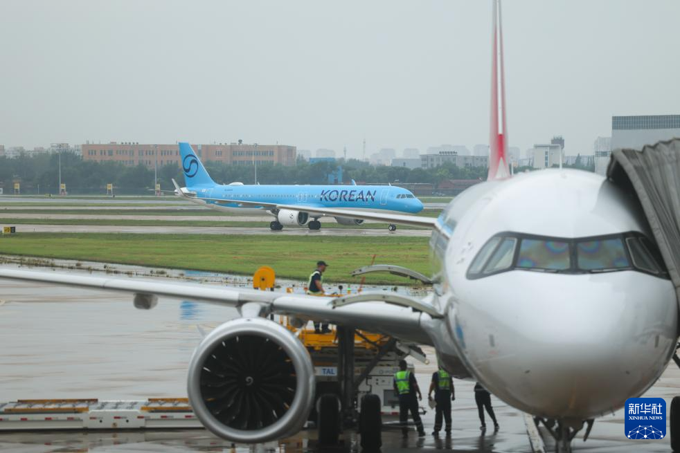 8月27日,两架国际航班相继抵达天津滨海国际机场T1航站楼。