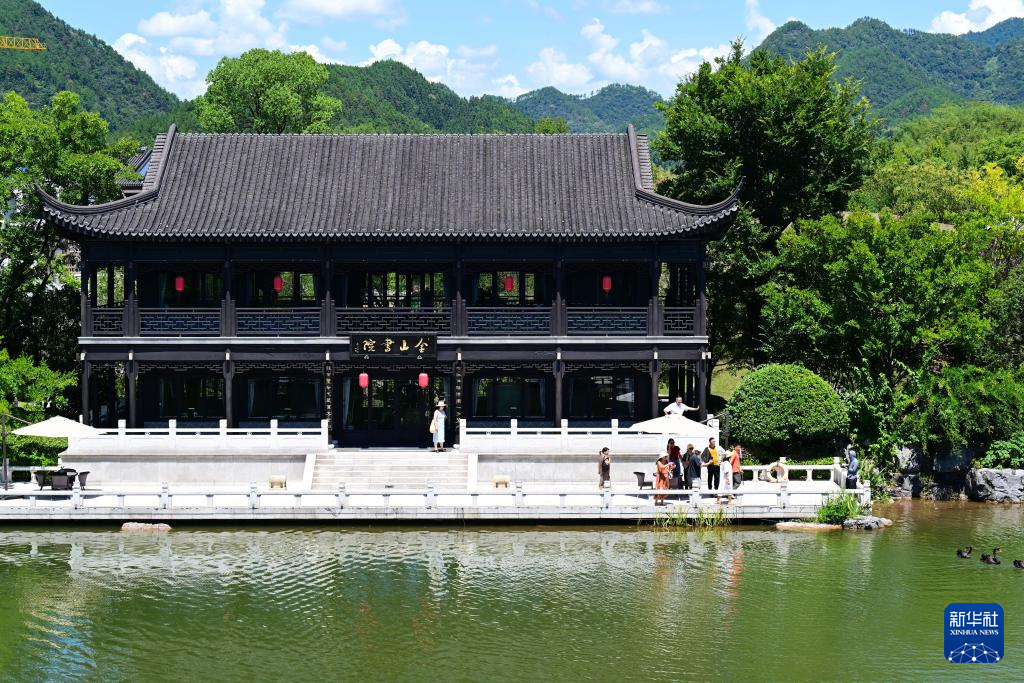 8月28日,游客在位于黄山市徽州区的院藏徽州智慧康养基地里参观休闲。