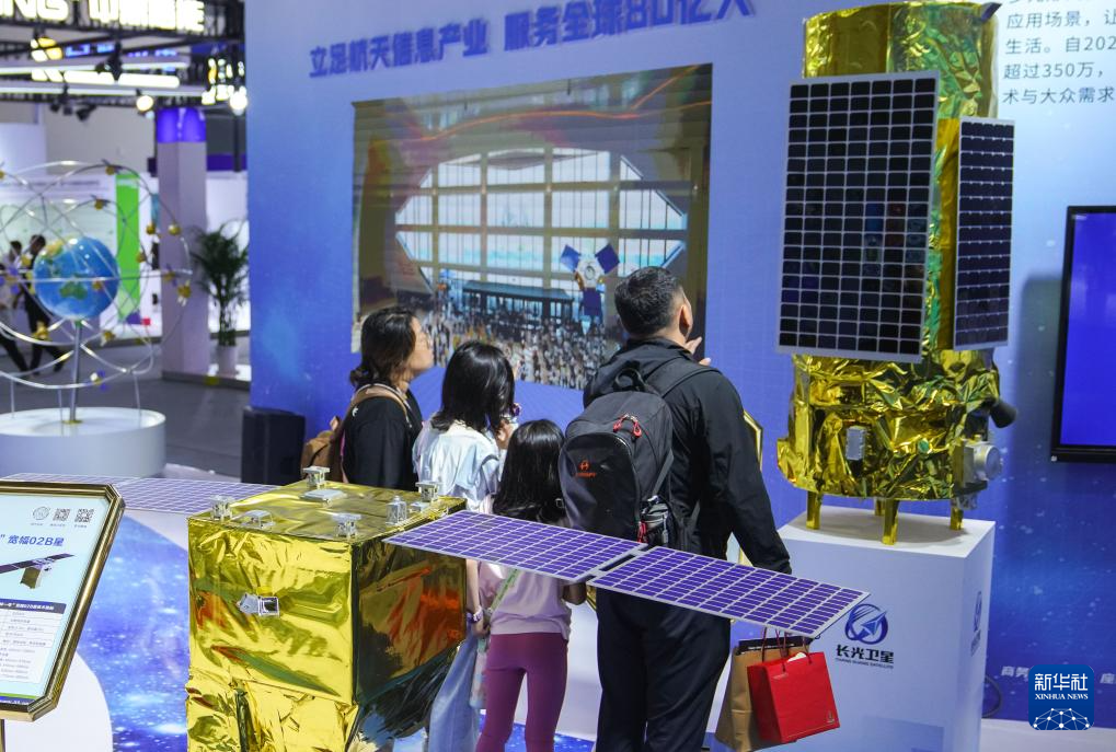 8月28日,参观者在第十五届中国—东北亚博览会吉林现代化产业展区参观“吉林一号”卫星模型。