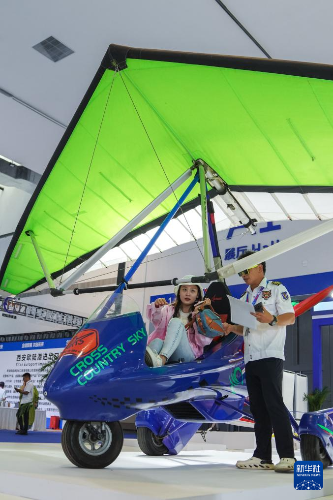 参观者在第十五届中国—东北亚博览会现场参观展出的动力三角翼产品(8月27日摄)。
