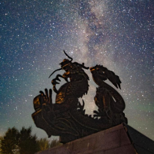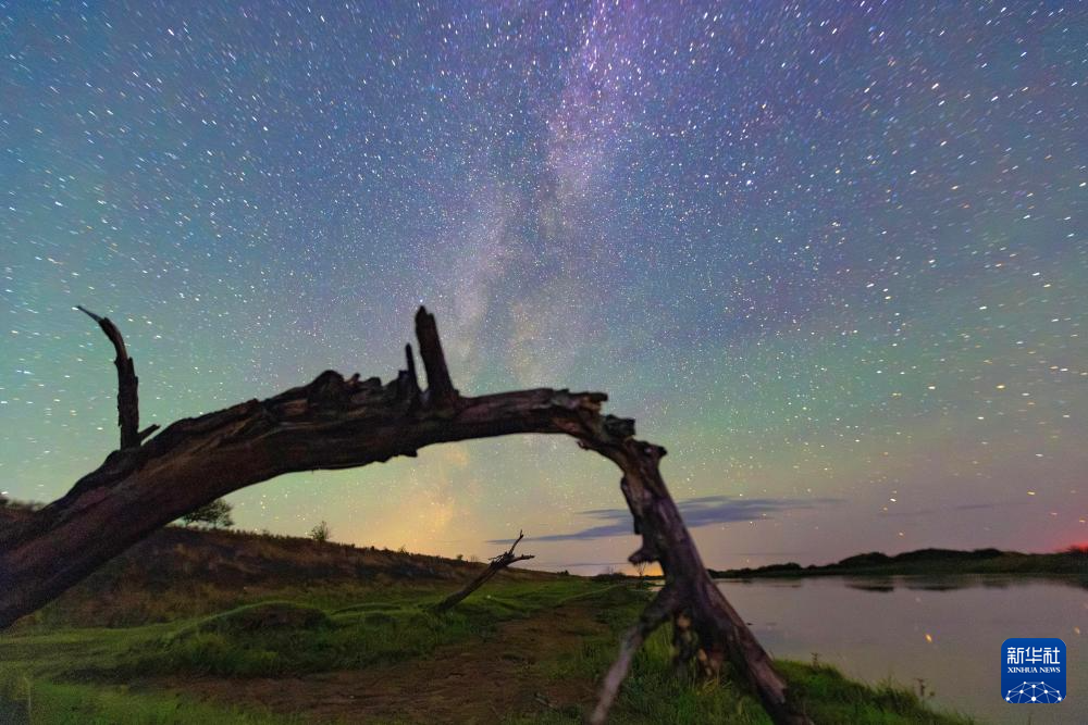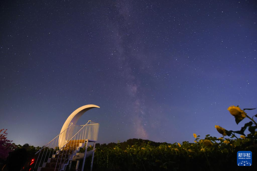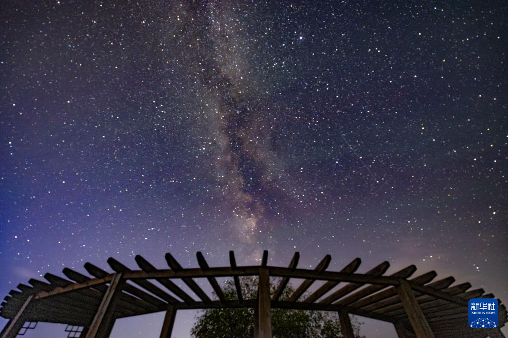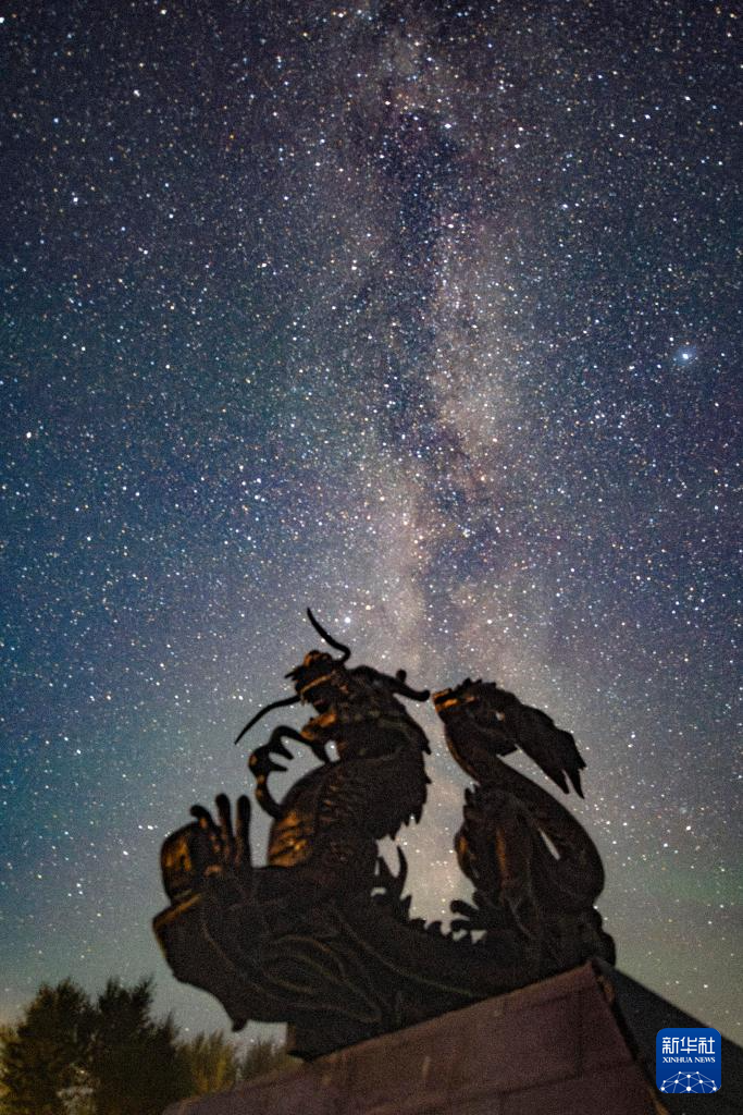 这是在黑龙江省齐齐哈尔市拍摄的银河下的艺术装置(8月26日摄)。
