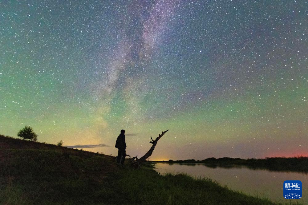 这是在黑龙江省佳木斯市汤原县拍摄的银河和两侧的牛郎星、织女星(8月24日摄)。