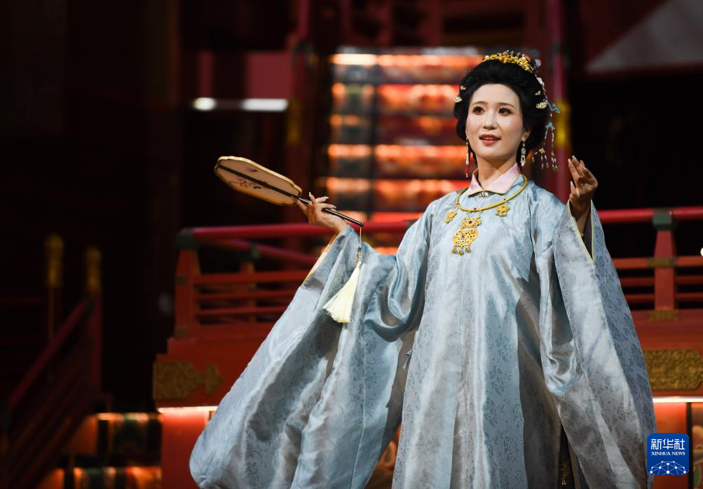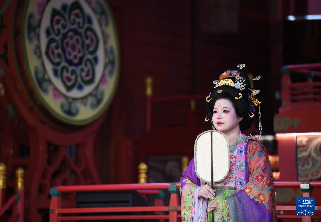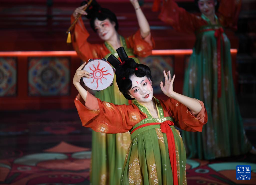 8月29日,演员在西安市长安十二时辰主题街区表演。
