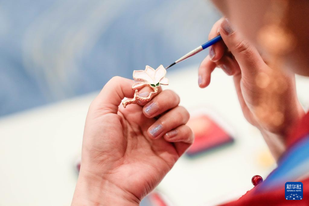 8月31日晚,工作人员展示花丝镶嵌技艺。