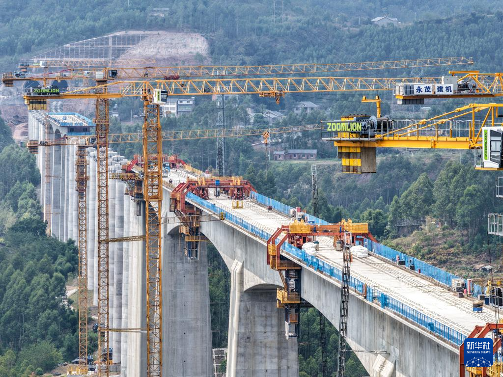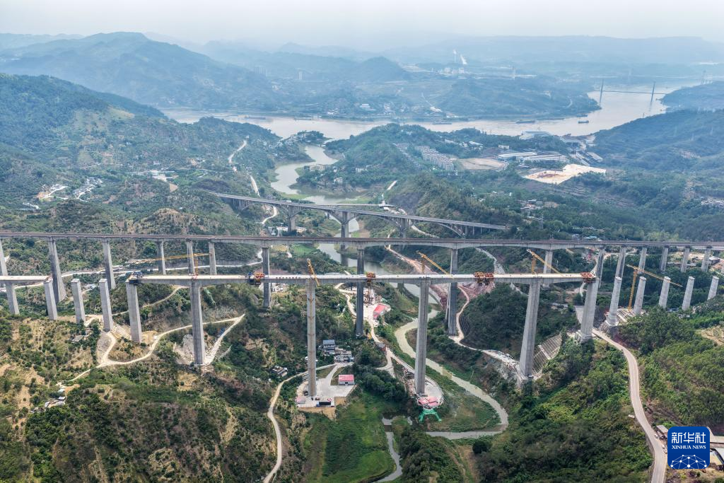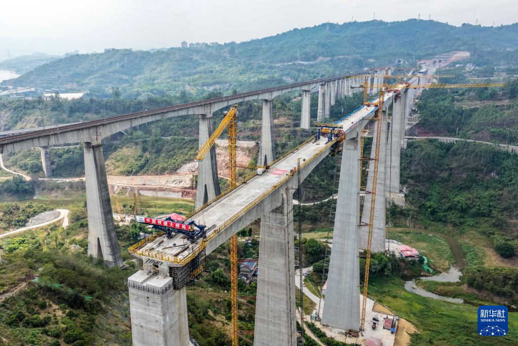 蔡家沟双线特大桥位于重庆市涪陵区,横跨长江支流,是全线重难点工程。大桥主跨采用连续刚构设计,整体呈“两端短、中间长”的对称结构,总跨度达584米。