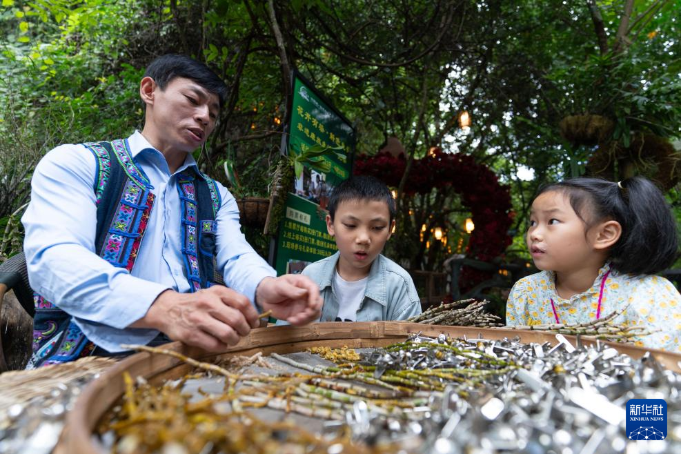 8月28日,游客在广南县六郎城村了解铁皮石斛加工技艺。