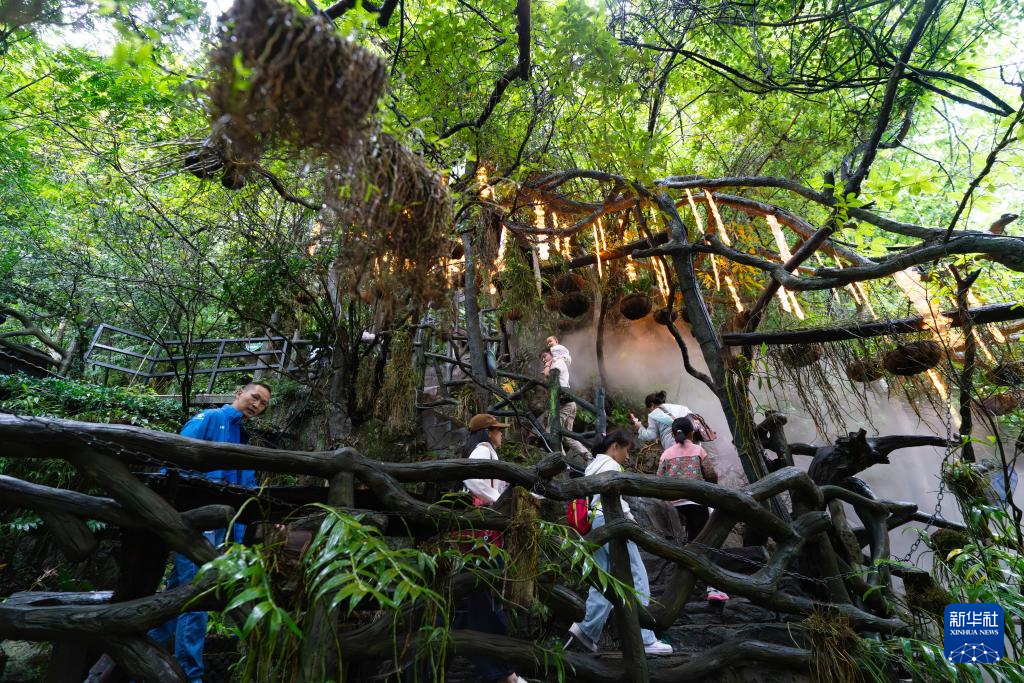 8月27日,游客在广南县六郎城村以铁皮石斛康养旅居为特色的“六郎城·仙草秘境”景区游览。