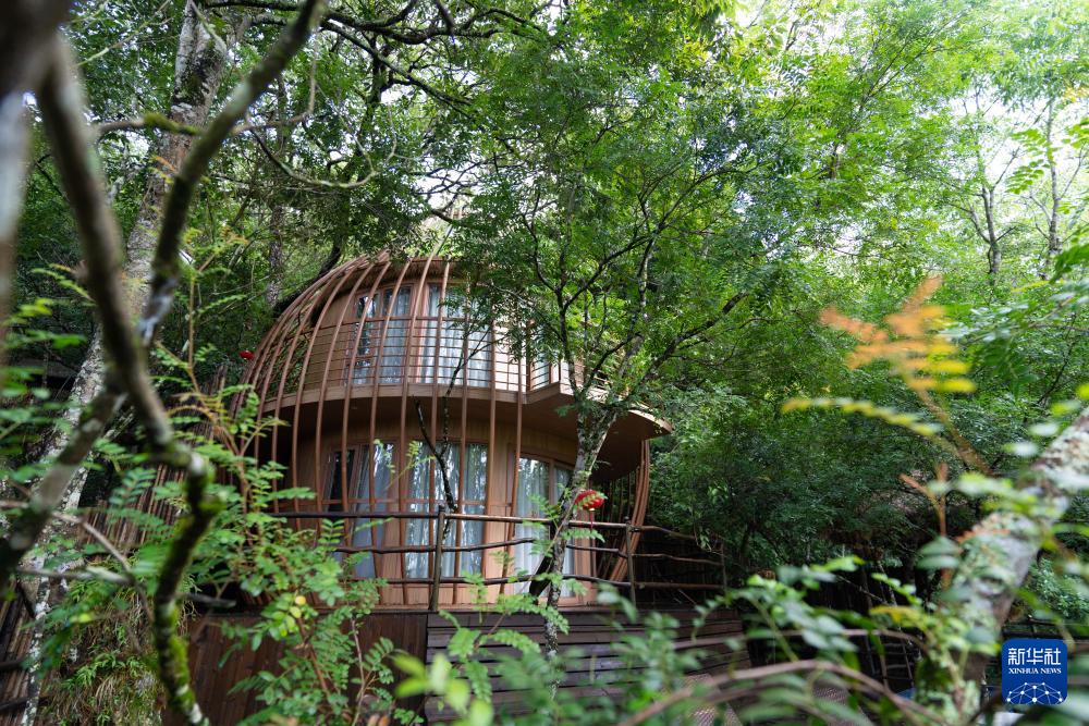 这是8月27日在广南县六郎城村拍摄的以铁皮石斛康养旅居为特色的“六郎城·仙草秘境”景区内一处民宿。