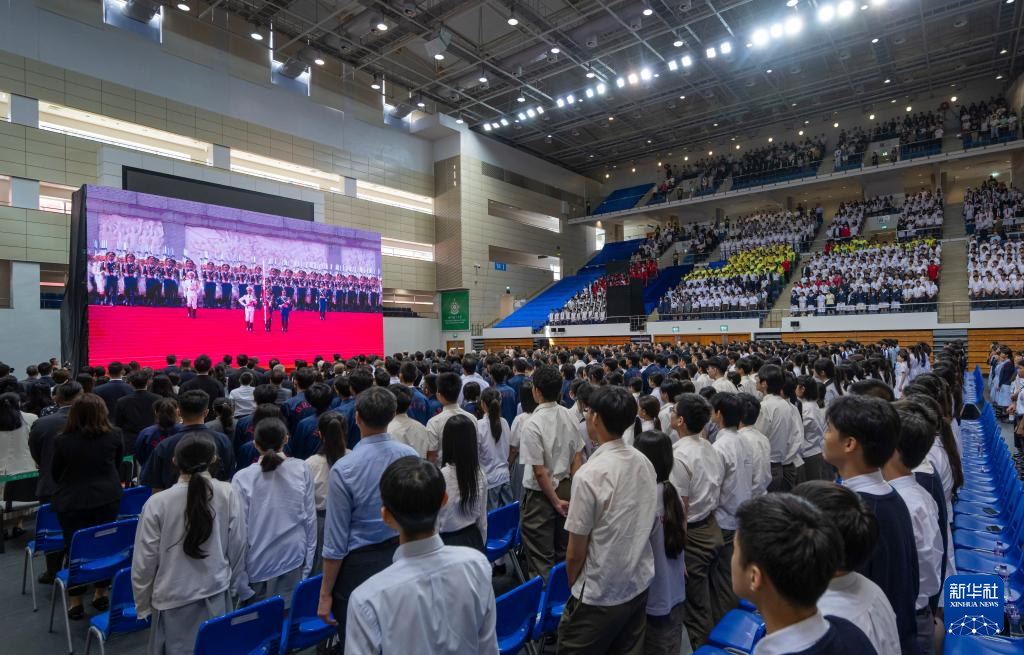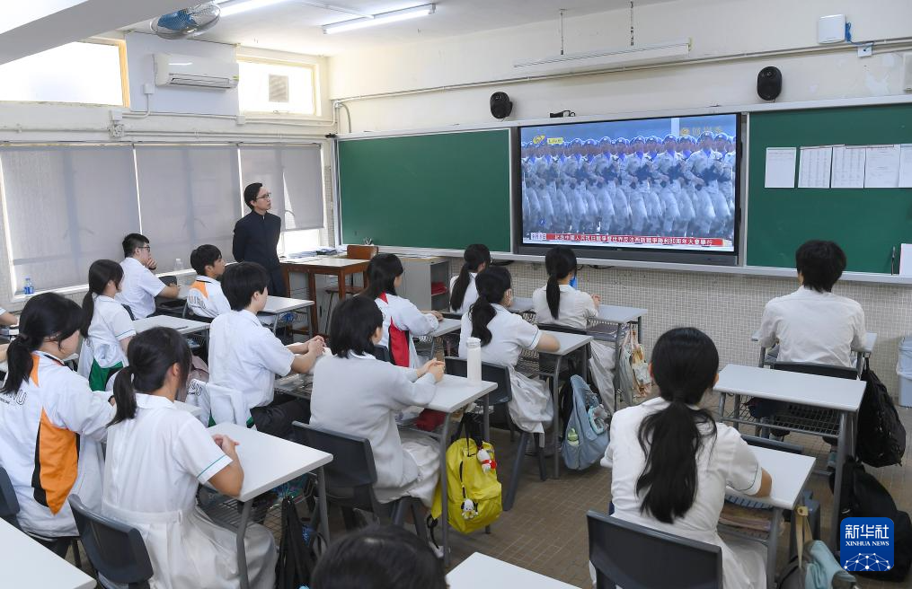 9月3日,香港培侨中学师生观看纪念中国人民抗日战争暨世界反法西斯战争胜利80周年大会直播。