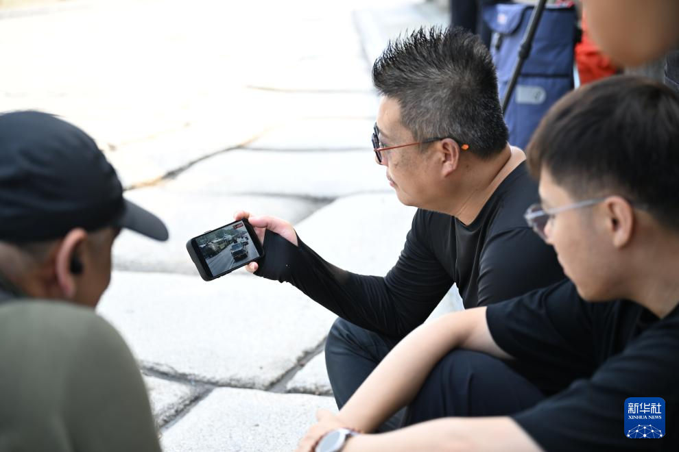 9月3日,游客在山东省枣庄市台儿庄古城西门观看纪念中国人民抗日战争暨世界反法西斯战争胜利80周年大会直播。