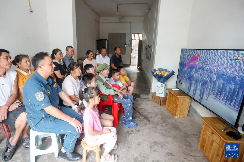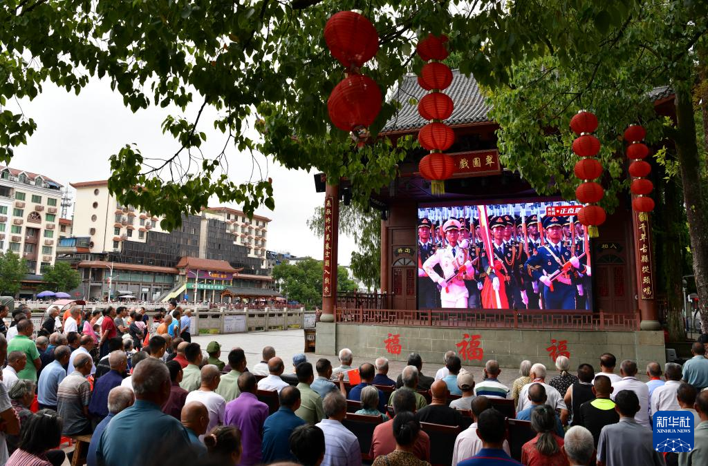 9月3日,在福建省三明市宁化县,退伍军人和群众一起观看纪念中国人民抗日战争暨世界反法西斯战争胜利80周年大会直播。