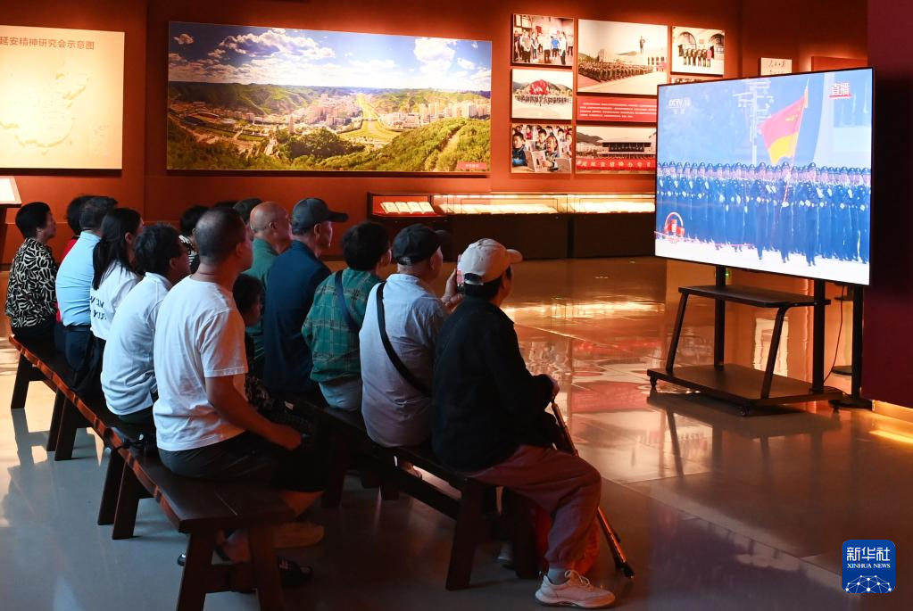 9月3日,参观者在陕西延安革命纪念馆观看纪念中国人民抗日战争暨世界反法西斯战争胜利80周年大会直播。
