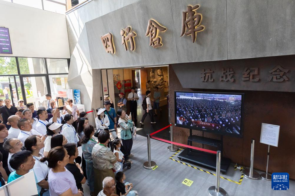 9月3日,市民在上海四行仓库抗战纪念馆观看纪念中国人民抗日战争暨世界反法西斯战争胜利80周年大会直播。