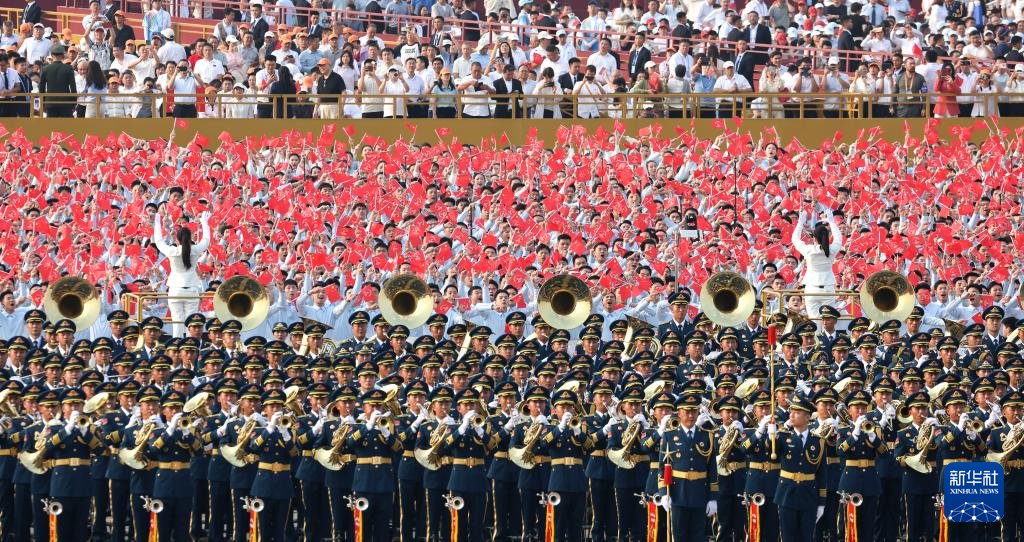 9月3日,纪念中国人民抗日战争暨世界反法西斯战争胜利80周年大会在北京隆重举行。这是联合军乐团。