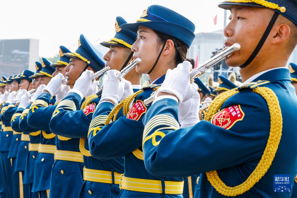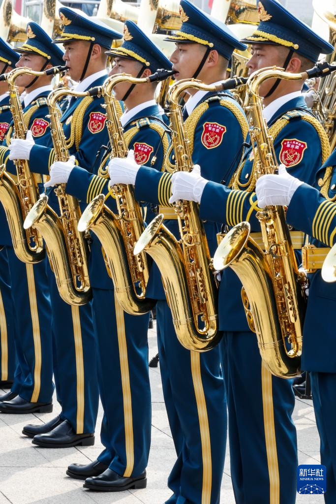 9月3日,纪念中国人民抗日战争暨世界反法西斯战争胜利80周年大会在北京隆重举行。这是中国人民解放军联合军乐团在演奏。
