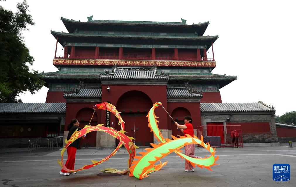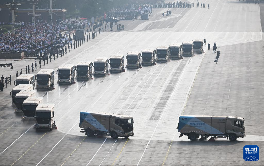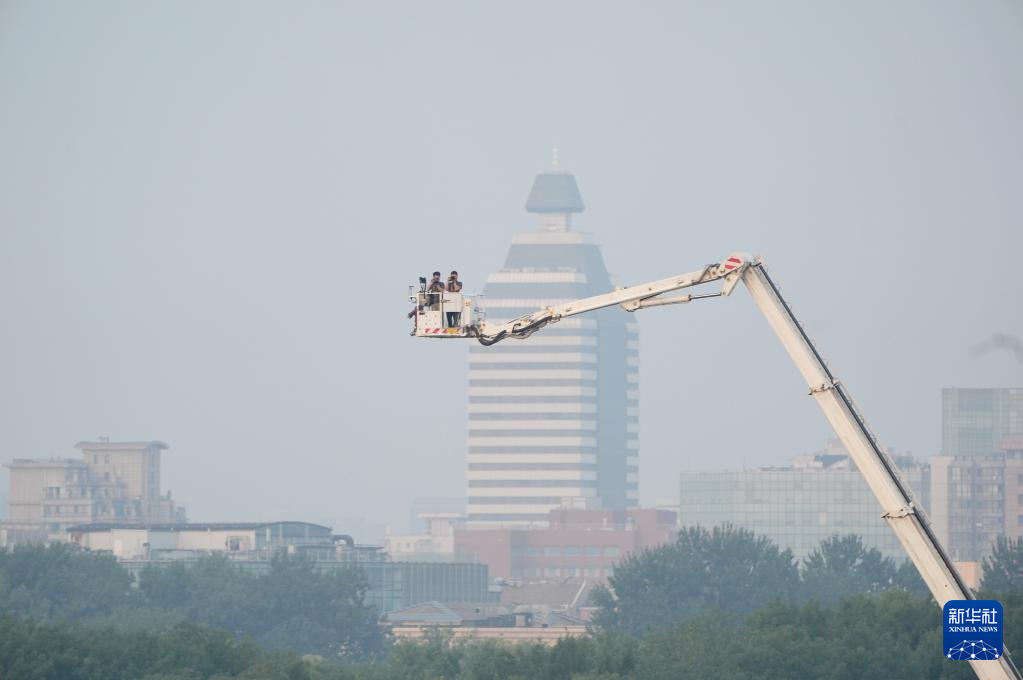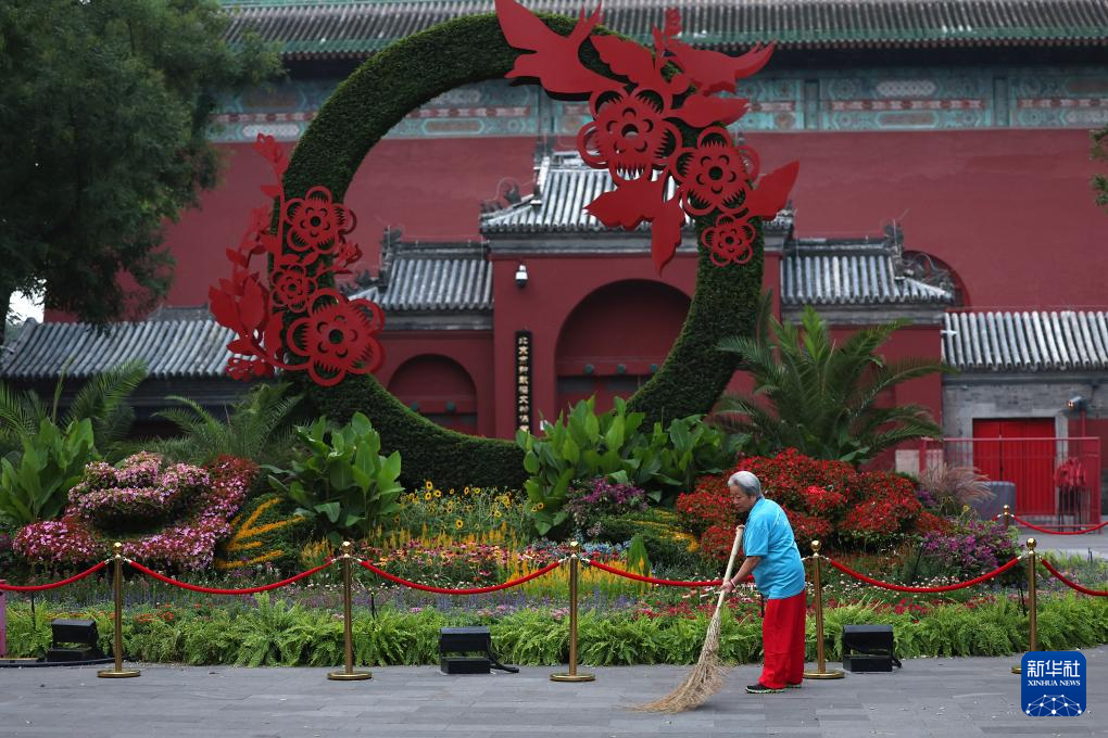 9月3日清晨,市民在北京鼓楼附近清扫街道。